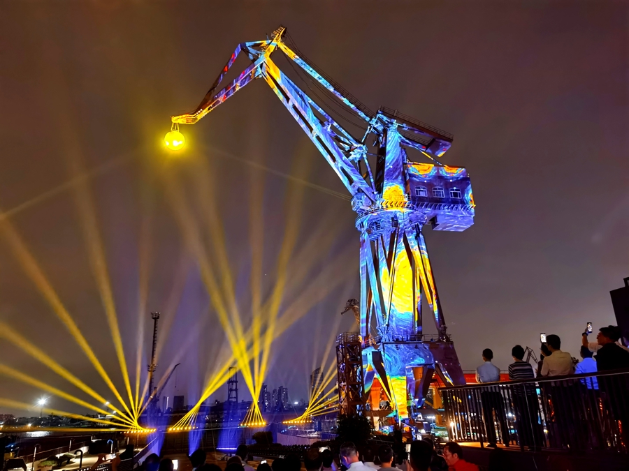 百年船厂光潮悦动中,第二届上海国际光影节杨浦分会场系列活动随之拉开帷幕。据介绍,以“数漫杨浦,一起YOUNG”为主题,杨浦区在复兴岛、五角场、杨浦滨江等区域自9月29日至10月7日将开展为期9天的光影盛宴。通过数字科技重塑工业记忆,以次元文化点燃城市活力,打造属于杨浦的“赛博朋克”式奇幻之夜。